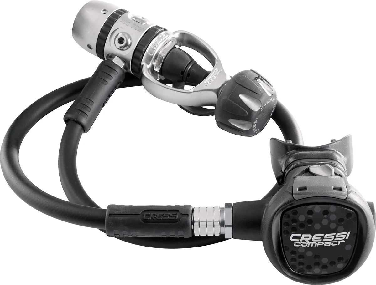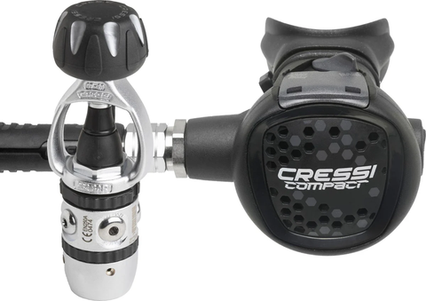 Bộ điều chỉnh Cressi AC2 & XS Compact là lựa chọn hoàn hảo cho trung tâm lặn, trường dạy lặn và thợ lặn chuyên nghiệp nhờ thiết kế đơn giản, bền bỉ, dễ bảo trì và chi phí hợp lý. Giai đoạn 1 AC2 sử dụng piston mạnh mẽ, lưu lượng khí lên đến 2100 lít/phút, tích hợp bộ lọc hình nón dung lượng lớn chống tạp chất, 1 cổng HP và 4 cổng LP, dễ dàng điều chỉnh áp suất bằng khóa Allen, trọng lượng chỉ 480 g (DIN) và 615 g (INT). Giai đoạn 2 XS Compact siêu nhẹ chỉ 145 g, đường kính 6 cm, cấu trúc nguyên khối chắc chắn bằng ABS + elastomer, mang lại hơi thở êm ái, dồi dào và ổn định với độ nhạy cao, hạn chế tối đa hiện tượng freeflow. Thiết kế thông minh giúp khí thoát ra ngoài tầm nhìn, nút xả lớn tiện dụng cho người mới, dễ tháo lắp và vệ sinh. Với sự kết hợp giữa hiệu suất cao, độ tin cậy và giá trị kinh tế, AC2 + XS Compact được xem là “người bạn đồng hành” lý tưởng cho lặn du lịch, huấn luyện và thuê thiết bị.