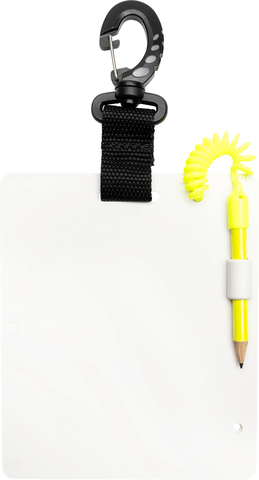 Writing Slate Cressi là phụ kiện không thể thiếu cho thợ lặn, giúp ghi chú nhanh chóng và trao đổi thông tin dưới nước. Với thiết kế gọn nhẹ, bền bỉ, bảng ghi chú được trang bị carabiner/clip an toàn để gắn vào BCD, cùng bút chì kèm dây xoắn nhựa chống thất lạc. Được làm từ vật liệu có thể tái chế, sản phẩm vừa thân thiện môi trường vừa tiện lợi, mang lại trải nghiệm lặn chuyên nghiệp và an toàn hơn.