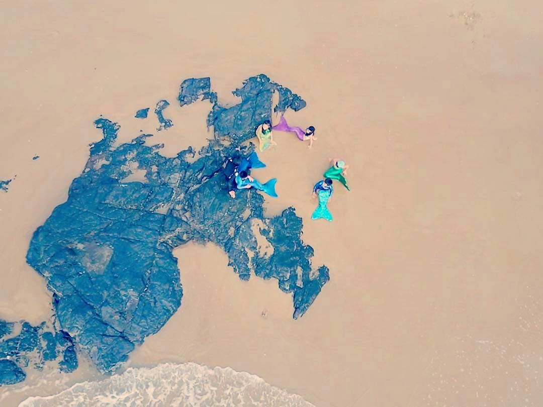 Chàng tiên cá Tiun cùng các học viên luyện bơi tiên cá trên biển Vũng Tàu