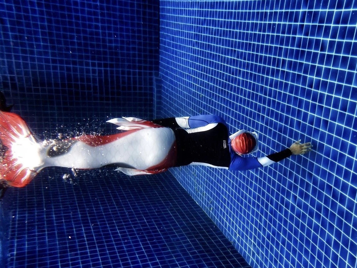 Tiun cùng các học viên mang đuôi tiên cá TIUTAC sản xuất trong kỳ thi cấp bằng PDIC mermaid level 1