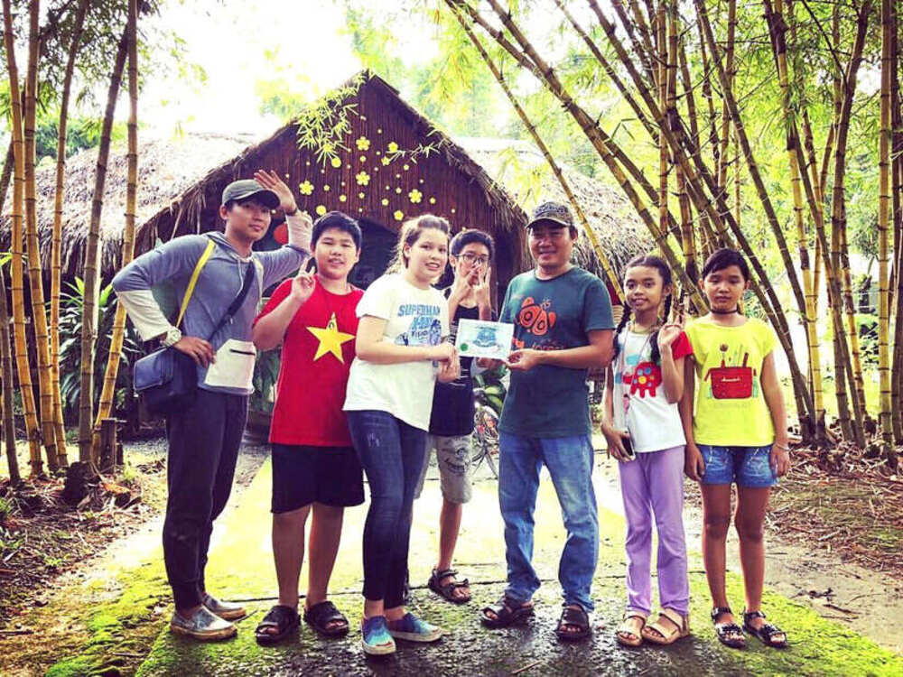 Tiên cá Tiun và các học trò nhận bằng khen trồng rừng từ giám đốc vườn quốc gia Cát Tiên