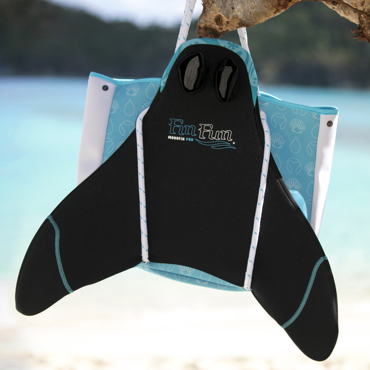 Đuôi cá viền xanh dương FinFun mang đến cảm giác bơi lội mạnh mẽ và mượt mà nhờ lực đẩy vượt trội, giúp người dùng lướt nhanh trên mặt nước mà vẫn tiết kiệm sức lực. Với thiết kế được cấp bằng sáng chế, sản phẩm tối ưu cả về sự thoải mái lẫn độ an toàn, có thể dùng riêng hoặc kết hợp với nhiều mẫu đuôi người cá, giúp tăng thêm trải nghiệm thú vị cho cả trẻ em lẫn người lớn. Kích thước đuôi size Jr (Chiều dài 44.5cm, Chiều rộng 47cm) phù hợp với cỡ da đuôi từ 6-10 và size Pro (Chiều dài 54cm, Chiều rộng 57cm)  phù hợp với cỡ da đuôi từ 12 tuổi trở lên. Điểm nhấn nổi bật của chiếc đuôi cá này là túi đựng chân êm ái, dễ tháo rời ngay cả khi ở dưới nước, vỏ bọc Neoprene cao cấp chuyên dụng cho lặn, cùng tấm nhựa polypropylene siêu bền gần như không thể phá vỡ và được bảo hành trọn đời. Với lực đẩy trung tính và độ bền ấn tượng, đây chính là lựa chọn lý tưởng cho những ai muốn hóa thân thành nhân ngư và tận hưởng từng khoảnh khắc bơi lội đầy thú vị.