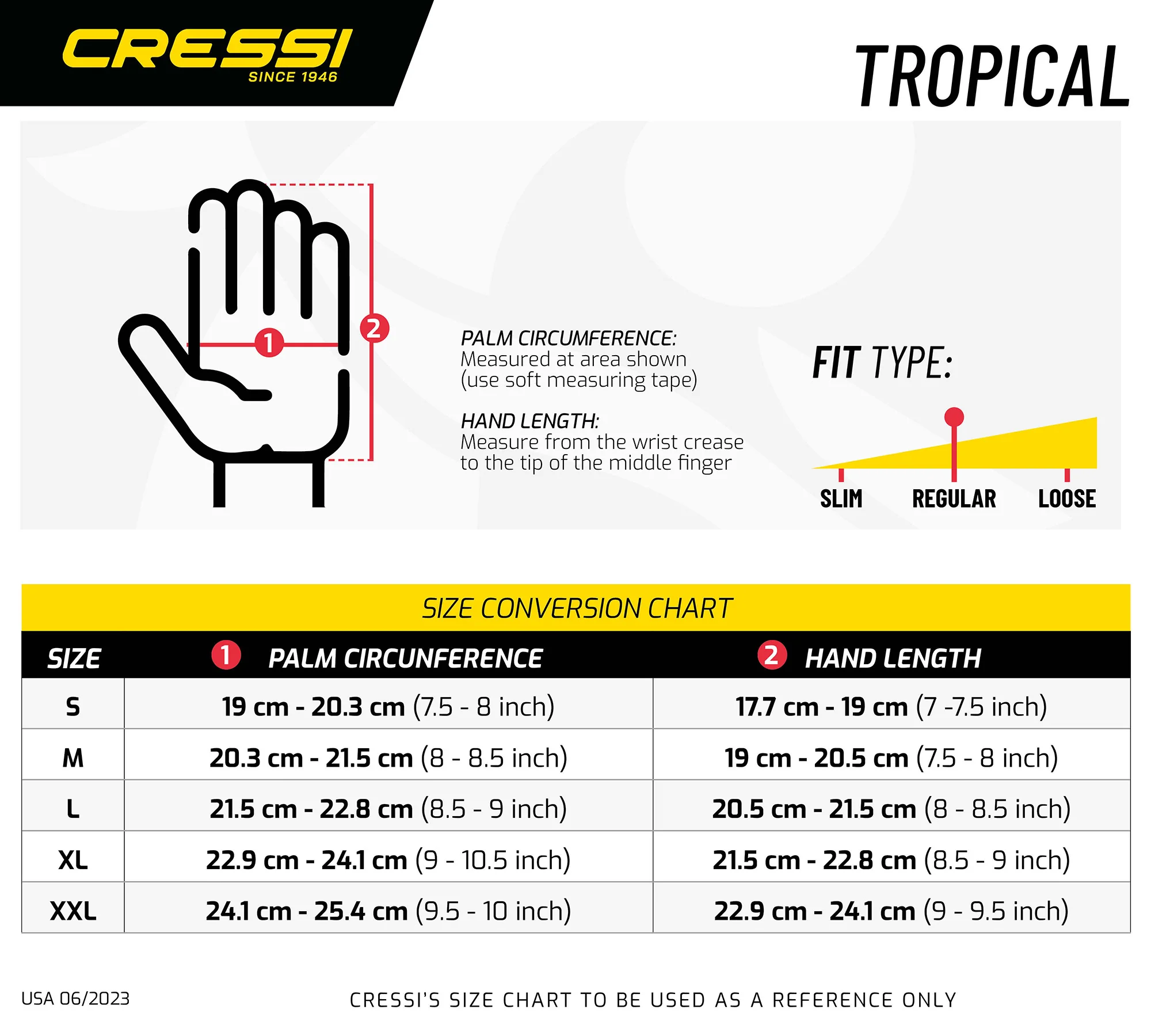 Cressi Tropical Gloves được thiết kế với độ dày 2 mm từ neoprene mềm, nhẹ và thoáng, mang lại sự thoải mái tối đa khi lặn ở vùng nước ấm. Khu vực lòng bàn tay và ngón tay được phủ lớp Napa màu xám nhạt, mềm mại đặc biệt khi tiếp xúc với nước, giúp tăng độ nhạy cảm xúc giác. Phần mu bàn tay và cổ tay sử dụng neoprene mỏng, dẻo dai, cho phép dễ dàng điều chỉnh ngay cả khi đang lặn. Găng tay có khả năng chống mài mòn tốt, đồng thời mang lại sự linh hoạt vượt trội cho các hoạt động cần cảm giác chính xác ở đầu ngón tay. Đây là lựa chọn lý tưởng cho thợ lặn, người bơi lội hoặc tham gia các môn thể thao dưới nước ở vùng nhiệt đới.