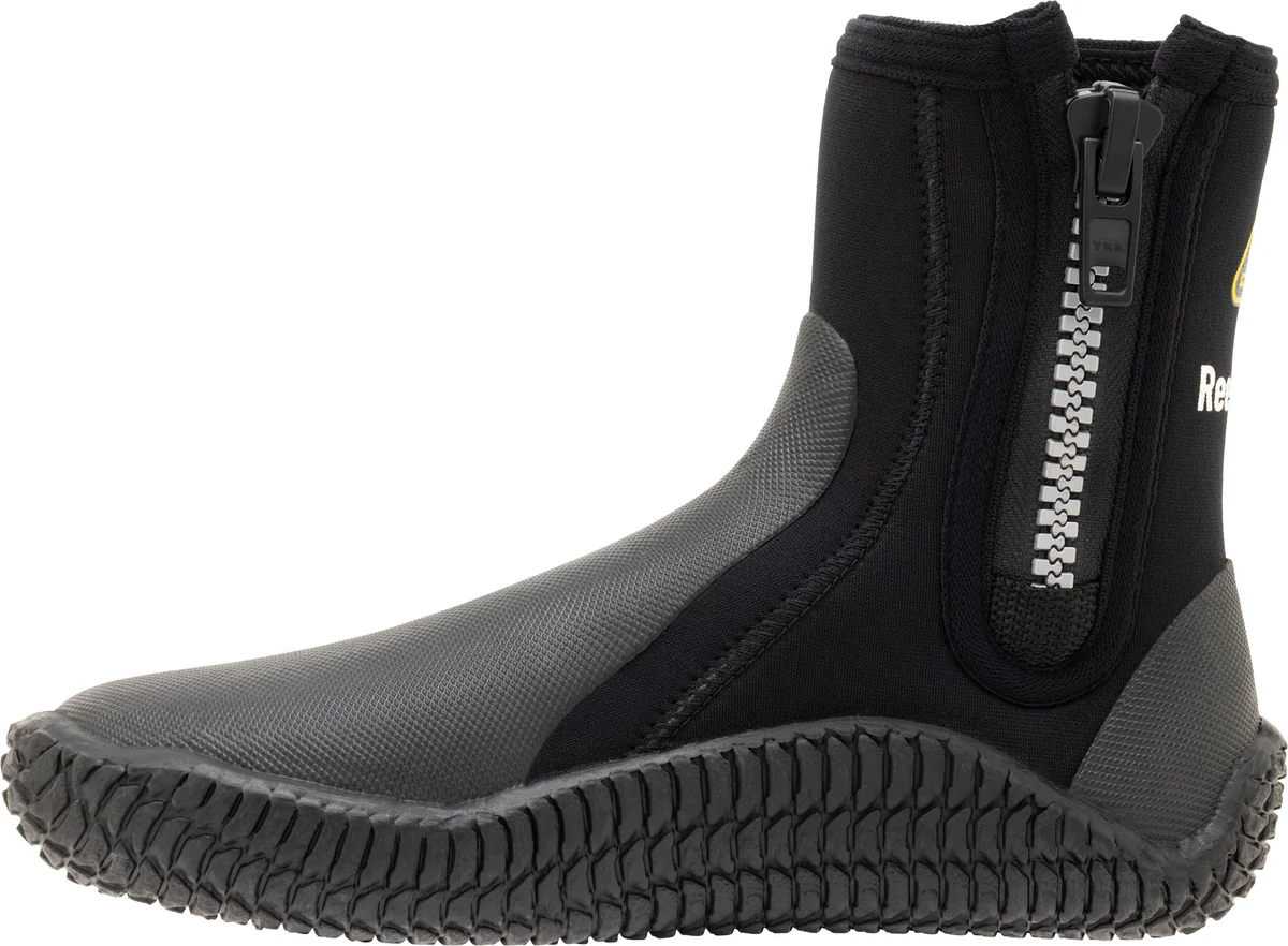Reeftech Boots được thiết kế linh hoạt, phù hợp với mọi hoạt động thể thao dưới nước như lặn biển, snorkeling, chèo SUP hoặc lướt ván. Với chất liệu neoprene mềm mại, hai lớp lót dày 5 mm, đôi giày giúp giữ nhiệt và bảo vệ chân tối đa trong môi trường nước lạnh. Phần mũi và gót giày được gia cố bằng cao su siêu bền, tăng khả năng chống mài mòn và va đập. Thiết kế đặc biệt với đế sau ôm gót chân hoàn hảo khi sử dụng cùng chân vịt hở gót, cực kỳ lý tưởng cho thợ lặn. Khóa kéo chắc chắn chạy từ đế lên đến cổ chân giúp mang vào và tháo ra dễ dàng, đi kèm lớp đệm lót mỏng ngăn nước tràn qua khóa kéo. Đế giày chống trượt cao cấp đảm bảo an toàn khi di chuyển trên bề mặt ướt trơn. Reeftech Boots là sự kết hợp hoàn hảo giữa tính năng giữ nhiệt, độ bền và sự tiện dụng, sẵn sàng đồng hành trong mọi chuyến lặn.