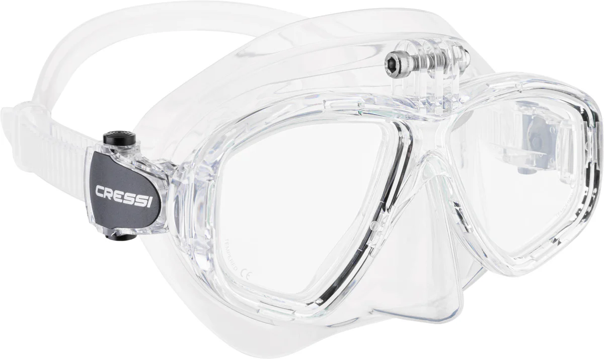 Chiếc kính lặn Cressi Action được phát triển dựa trên mẫu Focus nổi tiếng, nay tích hợp thêm ngàm gắn camera hành trình ngay trên khung. Khung kính được gia cố dày hơn tại khu vực lắp camera, kèm theo sẵn ốc vặn và núm chỉnh góc quay tiện lợi. Dây khóa xoay 360° với chốt bấm microadjustment cho phép bạn tùy chỉnh chỉ bằng một tay. Đây là lựa chọn hoàn hảo để vừa lặn vừa ghi lại mọi khoảnh khắc dưới nước.