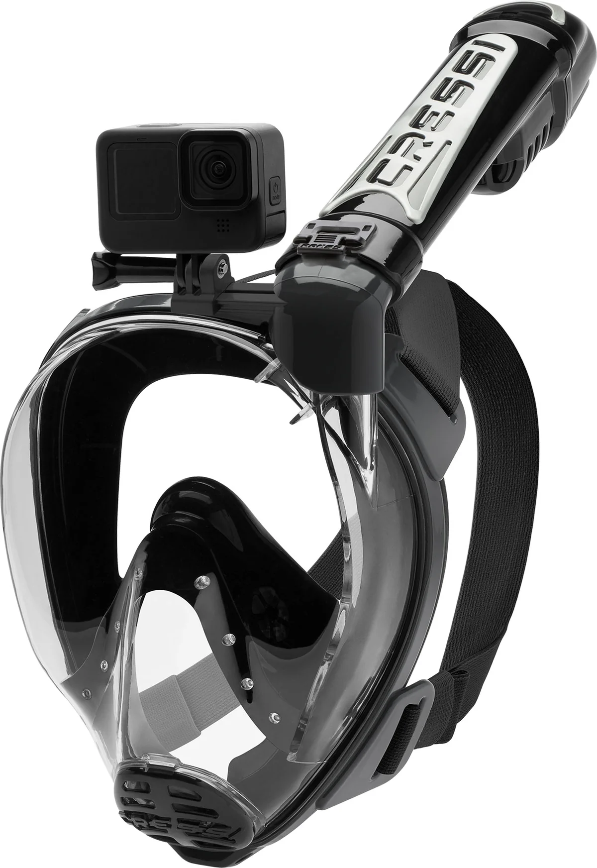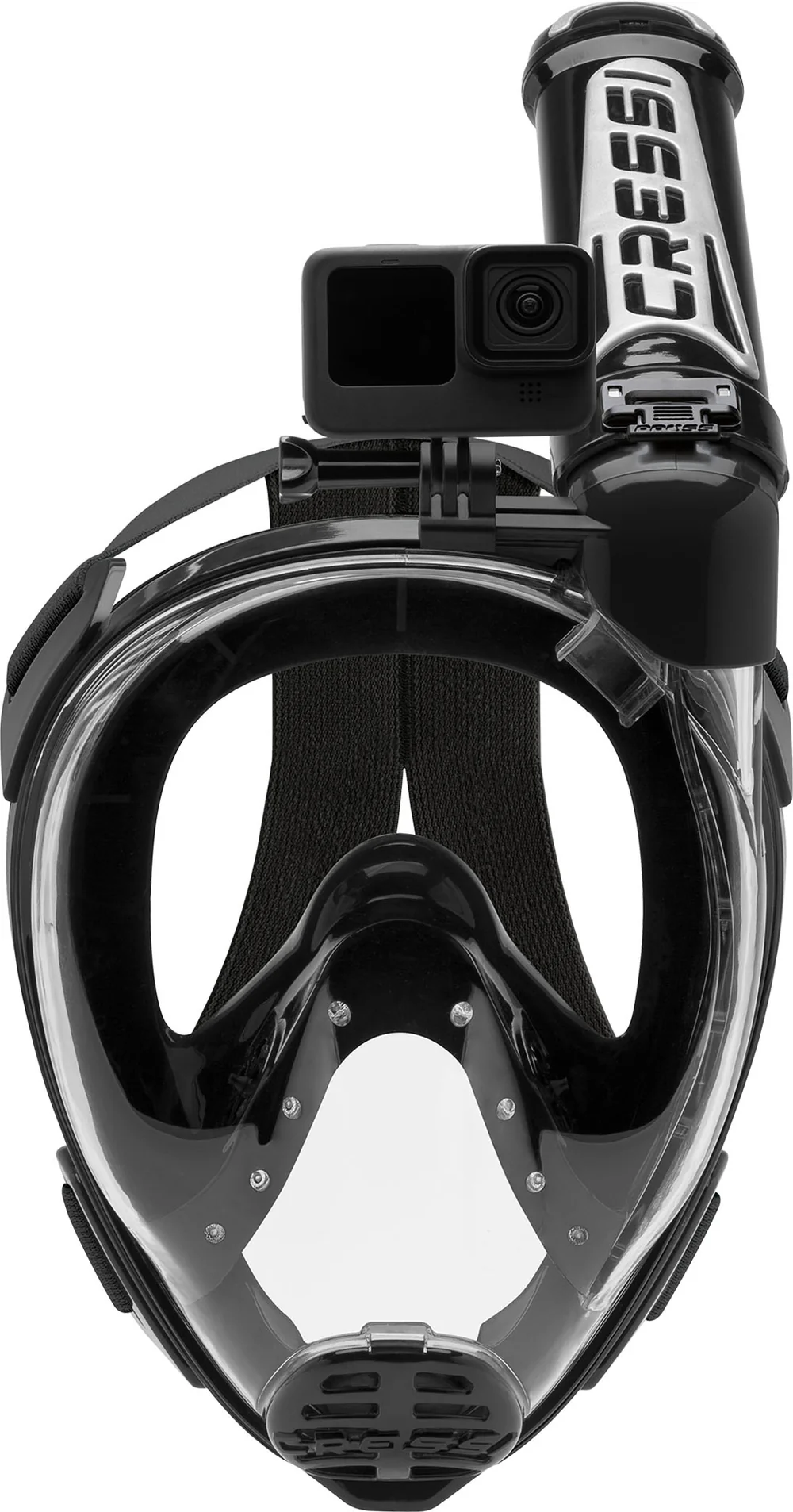 Duke Action Full Face Mask mặt nạ lặn nguyên mặt tích hợp ngàm gắn camera hành trình, mang đến trải nghiệm snorkeling thú vị và sống động. Thiết kế đặc trưng của dòng Cressi Duke giúp người dùng thở tự nhiên bằng cả mũi và miệng, hạn chế đọng CO₂ và ngăn nước xâm nhập nhờ ống thở khô tiên tiến. Mặt kính polycarbonate trong suốt cho tầm nhìn rộng và sắc nét, kết hợp lớp viền silicone mềm mại ôm khít khuôn mặt, tạo cảm giác thoải mái và an toàn. Với ngàm gắn action cam chắc chắn, bạn có thể ghi lại mọi khoảnh khắc khám phá cùng bạn bè dưới biển.