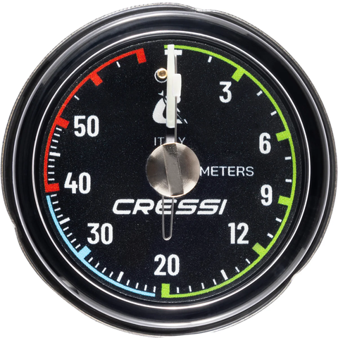 Vale 300 C Depth Gauge Module là mô-đun đo độ sâu cơ học chính xác, được thiết kế để lắp đặt trong các bảng điều khiển lặn (console). Mặt đồng hồ có thang đo lên đến 70 mét, phân vùng màu sắc trực quan giúp cảnh báo vùng an toàn, cảnh báo dừng giải áp và giới hạn tối đa khi lặn. Mặt kính khoáng trong suốt, chống trầy xước. Cơ chế hoạt động bằng màng cảm biến (membrane) cho khả năng đo ổn định và chính xác cao trong mọi điều kiện. Sản phẩm được thiết kế và sản xuất tại Italy bởi Cressi, thương hiệu uy tín trong thiết bị lặn từ năm 1946.
