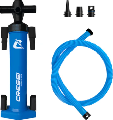 Ống bơm thuyền SUP Cressi là lựa chọn lý tưởng cho người yêu thích thể thao dưới nước, cần một thiết bị mạnh mẽ nhưng gọn nhẹ. Với dung tích 1100 cc, máy bơm cho hiệu suất cao, tích hợp chức năng bơm và xả hơi tiện lợi. Bộ chọn cơ học cho phép chuyển đổi giữa tác động kép (bơm khí khi đẩy và kéo) và tác động đơn để đạt áp suất tối ưu. Thiết kế thông minh với bệ gấp, tay cầm cố định, đồng hồ đo áp suất và nhiều kết nối lưỡi lê giúp tương thích hoàn toàn với các dòng SUP và kayak Cressi Hydrosports. Nhỏ gọn, dễ mang theo, sẵn sàng đồng hành trong mọi chuyến phiêu lưu.