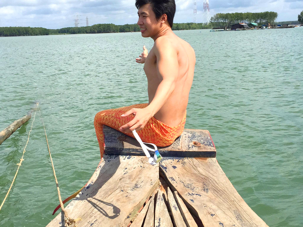 Tiên cá Tiun đi thuyền đánh cá trên sông Thị Vải kêu gọi ngừng chích điện tận diệt thủy sinh 2014 khiến ông chủ thuyền về bỏ nghề.