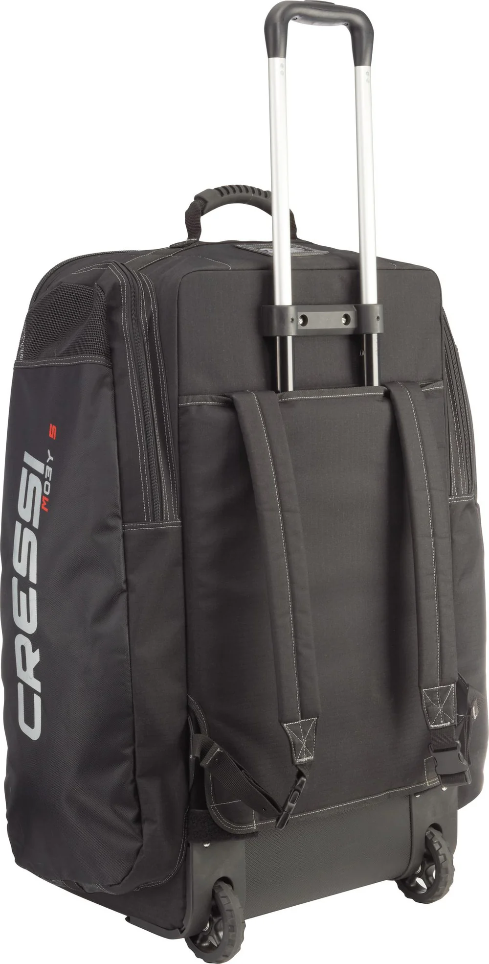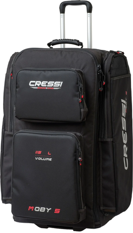 Cressi Moby 5 là chiếc vali kéo chuyên dụng cho thợ lặn, với sức chứa 115 lít, được làm từ chất liệu 300/400 Denier siêu nhẹ nhưng bền bỉ, chống mài mòn cao. Thiết kế ngăn chính mở ba phía giúp dễ dàng sắp xếp và lấy đồ. Bên ngoài có 2 ngăn lớn dạng hộp, 2 ngăn bên hông dành cho chân vịt và một ngăn nhỏ phía trên để gắn thẻ tên. Tay kéo hợp kim chắc chắn, có thể thu gọn hoàn toàn; bánh xe đường kính lớn, dễ thay thế khi cần. Toàn bộ khóa kéo YKK siêu bền, đảm bảo an toàn trong mọi chuyến đi. Với cấu trúc vững chắc, Moby 5 là lựa chọn lý tưởng để mang theo đầy đủ thiết bị lặn của bạn một cách gọn gàng và an toàn.