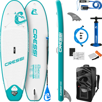 Thuyền bơm hơi lặn tự do Cressi Element là sự kết hợp hoàn hảo giữa độ bền, hiệu suất và tính tiện dụng. Sử dụng công nghệ vải hai lớp Cressi DWF, ván có cấu trúc kín khí với các sợi liên kết bên trong, tạo độ cứng chắc như ván truyền thống khi bơm đầy. Thanh ray hai lớp với độ dày biến thiên giúp tối ưu khả năng vận hành và dễ dàng cuộn gọn sau khi sử dụng. Thiết kế ISUP bền bỉ, nhẹ và linh hoạt, phù hợp cho cả gia đình trong các hoạt động lặn, chèo SUP hay khám phá biển khơi.
