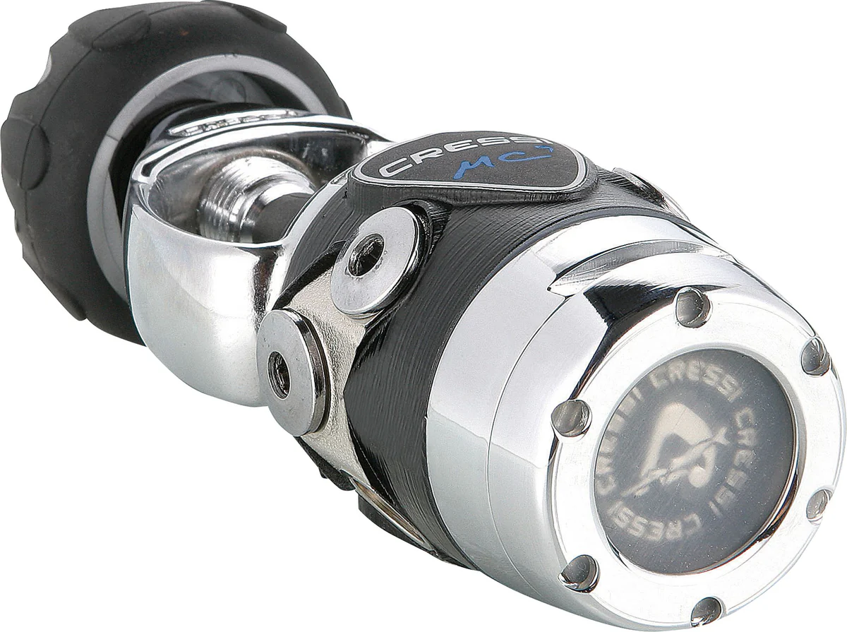 Cressi MC9-SC 1st Stage là dòng đầu điều áp cao cấp, sử dụng công nghệ màng cân bằng trong trục (Hyperbalanced In-line Diaphragm) giúp đảm bảo hiệu suất hô hấp tối ưu và ổn định trong suốt hành trình lặn, kể cả ở độ sâu lớn hoặc điều kiện khắc nghiệt. Điểm nổi bật của MC9-SC là buồng kín hoàn toàn, giúp ngăn cát, bụi, muối và các chất bẩn xâm nhập vào cơ chế bên trong, từ đó tăng tuổi thọ thiết bị và duy trì hiệu suất lâu dài. Thiết kế dạng trục thẳng (in-line) không chỉ tăng độ ổn định mà còn giúp tổng thể nhỏ gọn hơn, lý tưởng cho các cấu hình lặn tinh gọn (streamlined setup). MC9-SC là lựa chọn hoàn hảo cho những thợ lặn chuyên nghiệp hoặc người thường xuyên lặn ở môi trường nước lạnh, nước bẩn hoặc vùng nước sâu, nhờ khả năng hoạt động bền bỉ và cung cấp khí thở mượt mà, tin cậy.